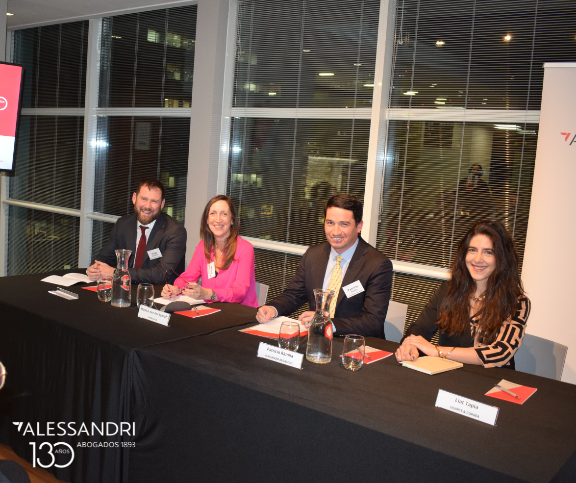 El panel estuvo compuesto por los abogados Mónica van der Schraft (Garrigues), Diego Navarrete (Ortuzar, Vergara, Boetsch) y Liat Tapia (Ugarte & Correa), moderados por Patricio Rámila, socio de Alessandri y delegado -40 del capítulo chileno del CEIA.